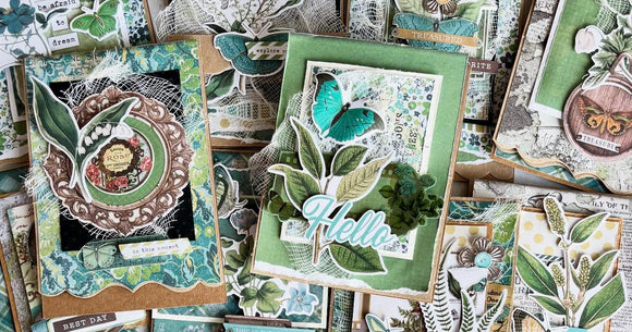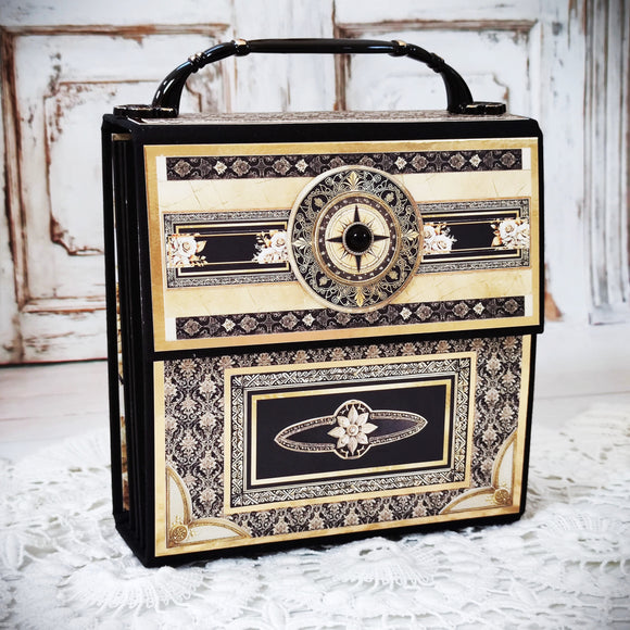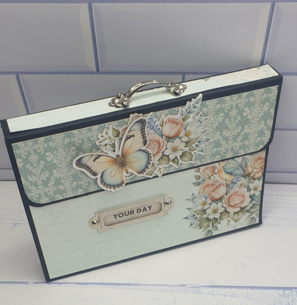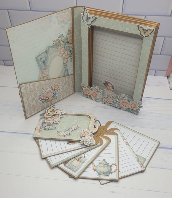 Our last afternoon class for the year is this very functional desk caddy. decorated with papers from the Paulas Attic collection. The class includes the rotating caddy base plus all the papers, embellishments and instructions to compete this project (accessories shown are not included).