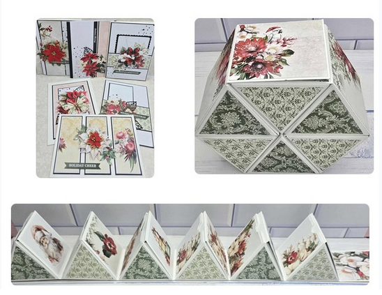 The projects are made using the latest Uniquely Creative Home for Christmas collection, and includes a full 6x6 paper pack, a full creative cuts and lots of other flowers and embellishments along with envelopes and and instructions - plenty of product for you to keep creating.