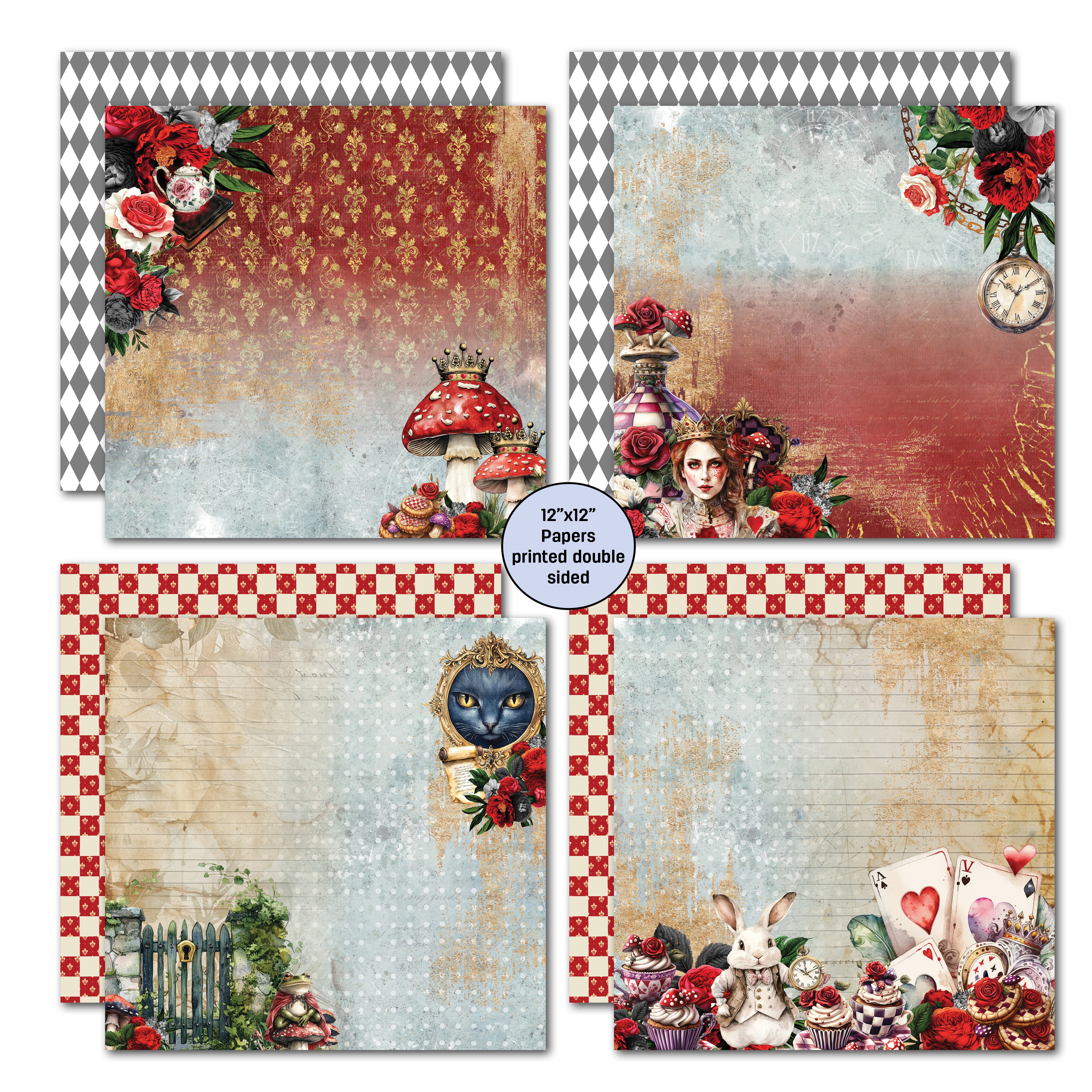 2x Printed 30.5x30.5 or 12x12inch themed papers printed on the reverse of the covers