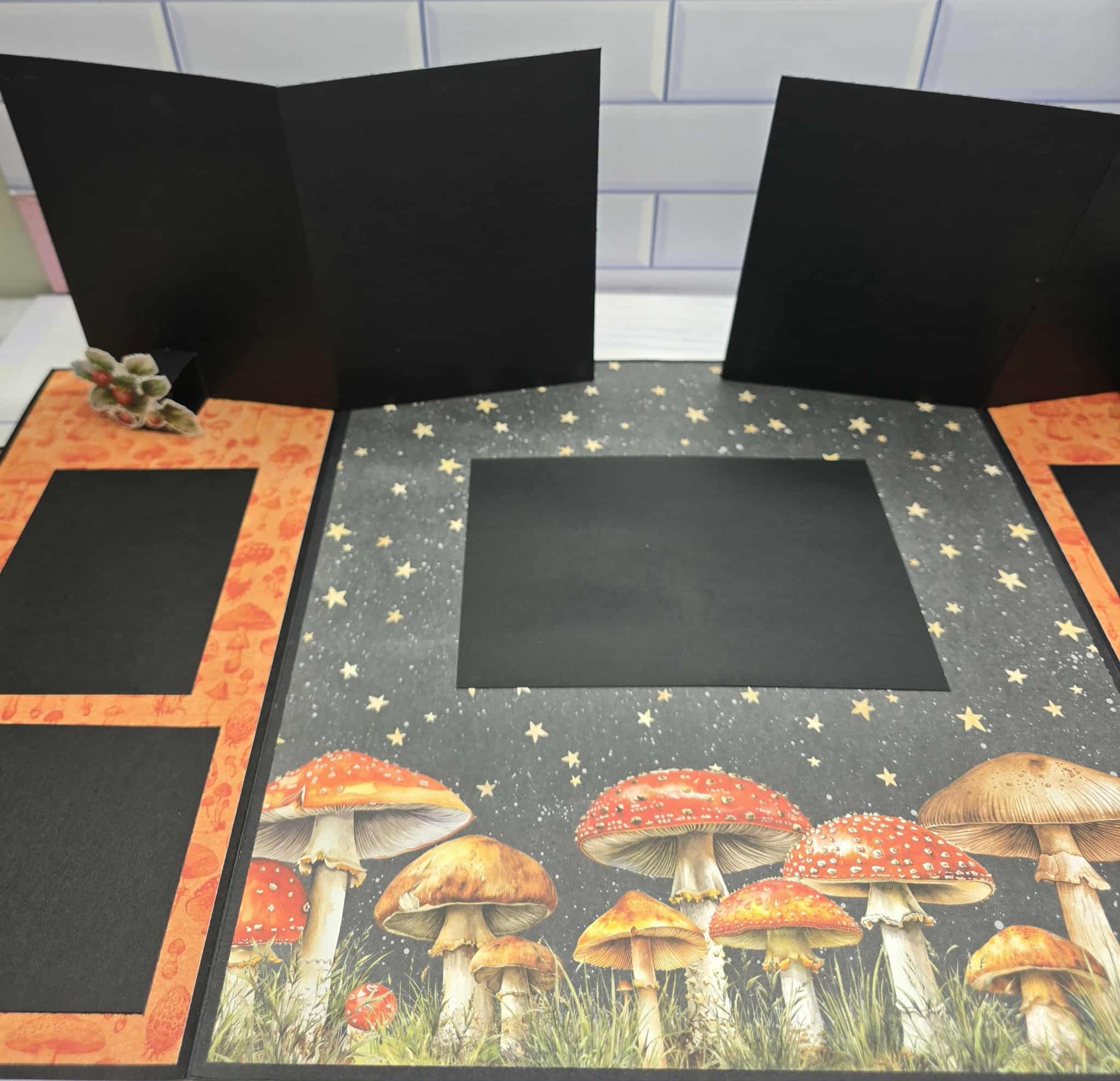 This stunning layout called Into the Woods uses papers from P13, it is comprised of plenty of nature style pictures. The layout itself has its own sleeve which it slides out of, when it is opened there is a clever pop up section inside allowing for an amazing photo display. It will accommodate Four 3 x 4 landscape photos, Two 3 x 4 portrait photos, Four 4 x 6 portrait photos and Two 4 x 6 landscape photos. (Note 3 pictures shown for this layout, but pictures are incomplete as there are missing embellishments).